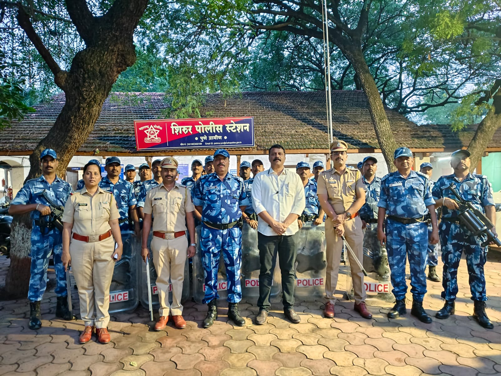 शिरूर पोलीस स्टेशन हद्दीमध्ये कायदा व सुव्यवस्था अबाधित राखण्यासाठी आज (शनिवार) सायंकाळी ६.३० वाजेपासून ते ७.१५ वाजेपर्यंत शिरूर शहरात भव्य रूट मार्च काढण्यात आला. हा रूट मार्च माननीय श्री. प्रशांत ढोले (उपविभागीय पोलीस अधिकारी, शिरूर विभाग) यांच्या मार्गदर्शनाखाली पार पडला.